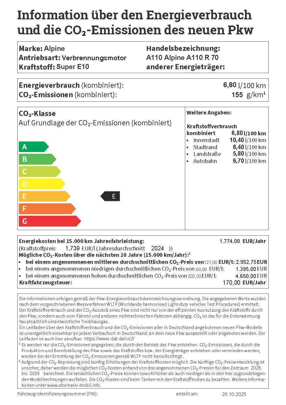 - Verbrauch kombiniert: 6.8 l pro 100 km