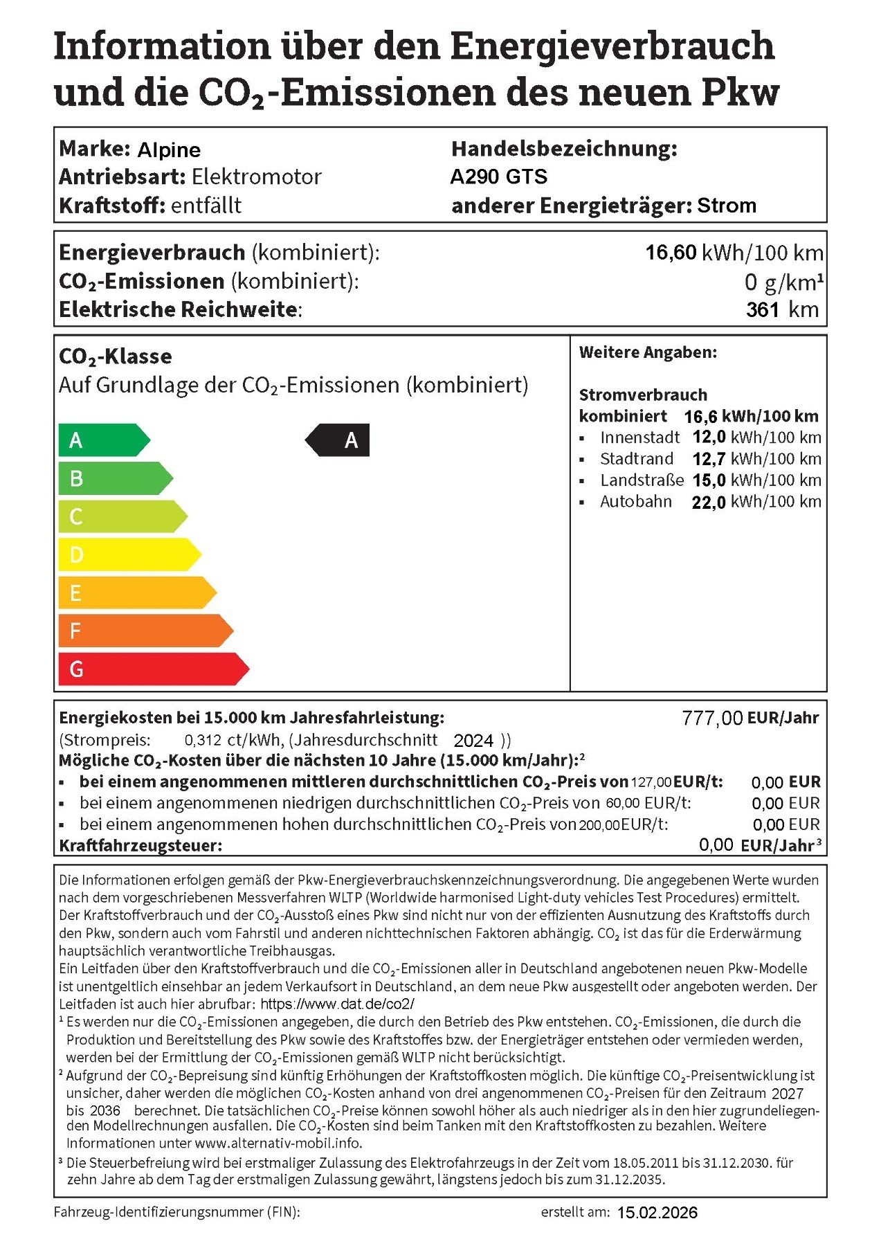 Alpine A290 GTS mit Driving-Paket, Safety-Paket & V2L-Adapter Weitere Beschreibung: - Batterie
