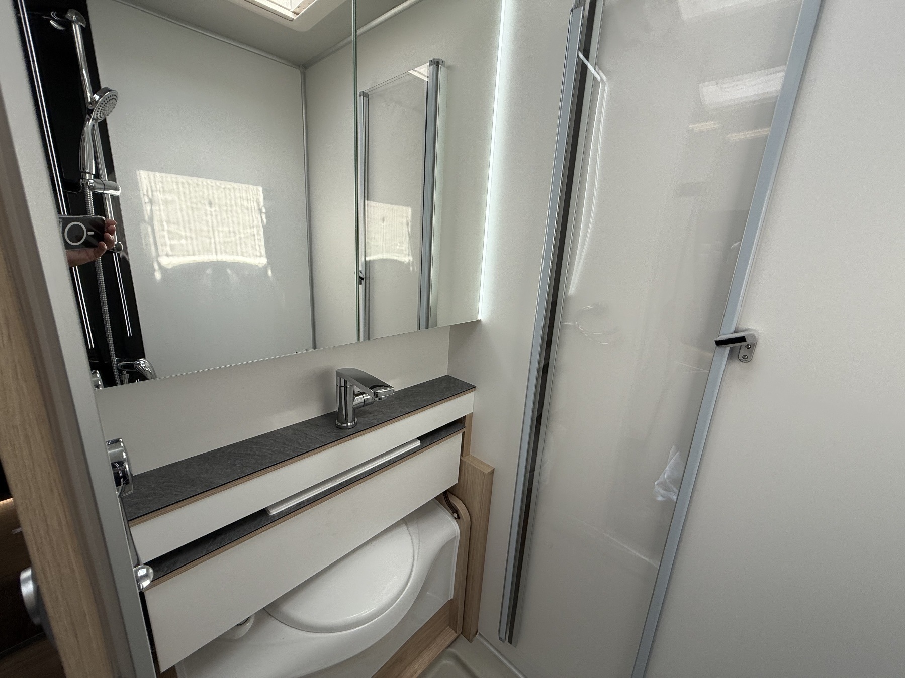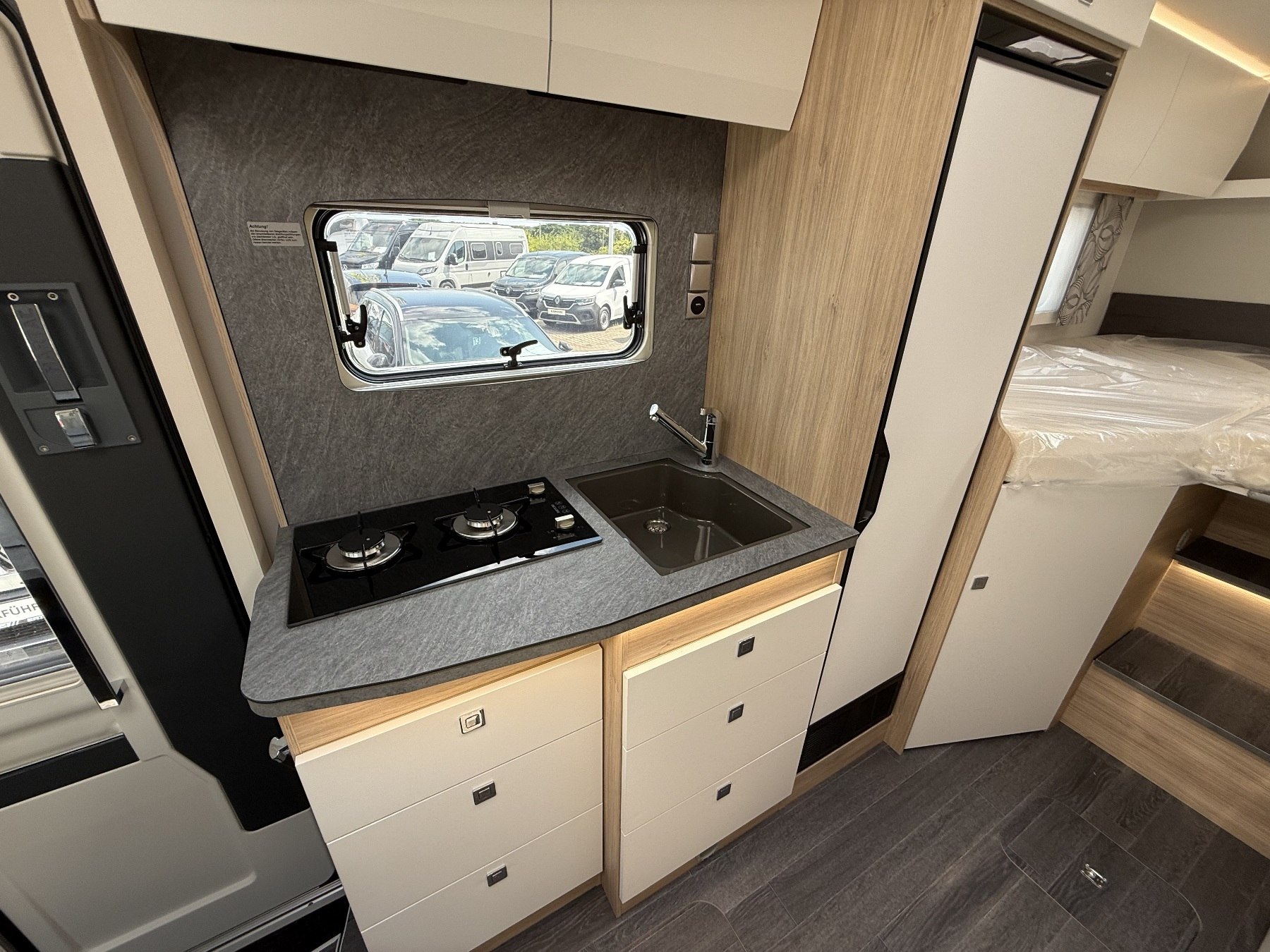 Markise, Bettverlängerung, Truma Combi 6E, Notbett, Deluxe Sitze, 100AH Lithium-Batterie, 100W Solar, Batterie Booster, 6x 230V Steckdosen, Rückfahrkamera, Selbstziehende Kabeltrommel, Hubbett, Midi-Heki über Sitzgruppe, Dou Control, Kraftstooftank 92l, Zusatzladegerät, BL-Upgrade Pack