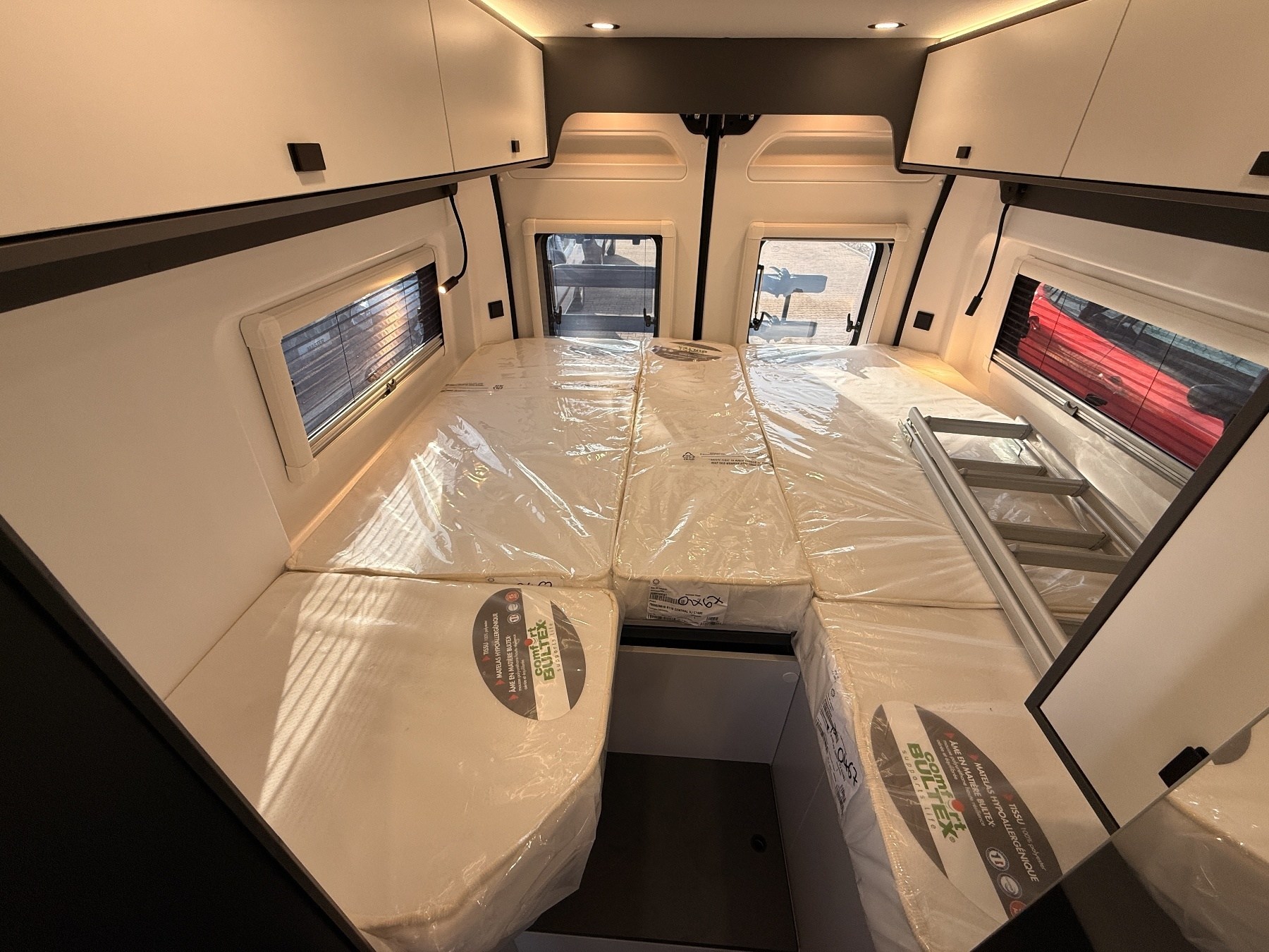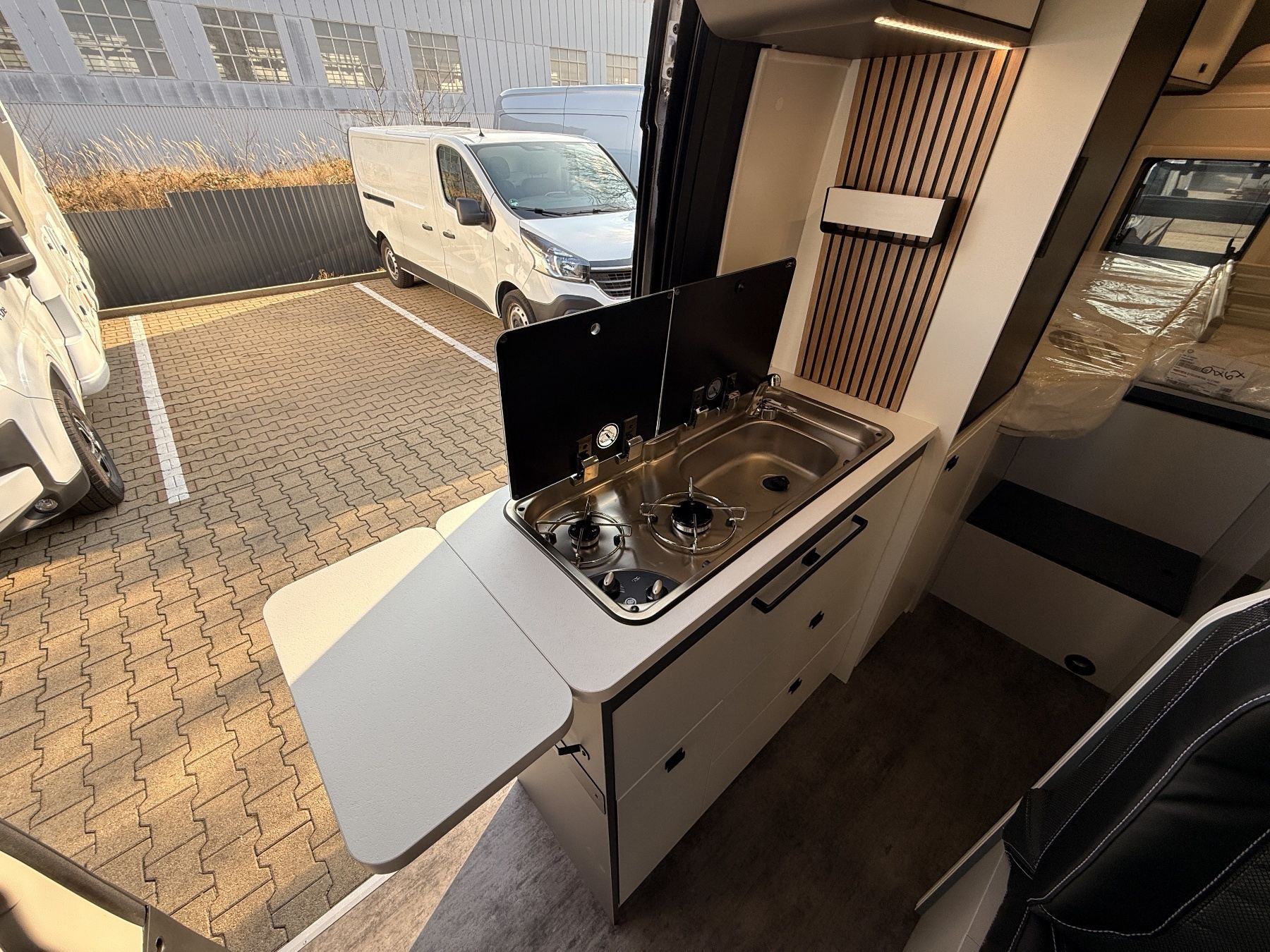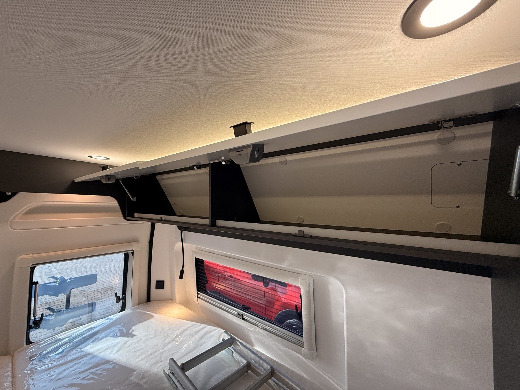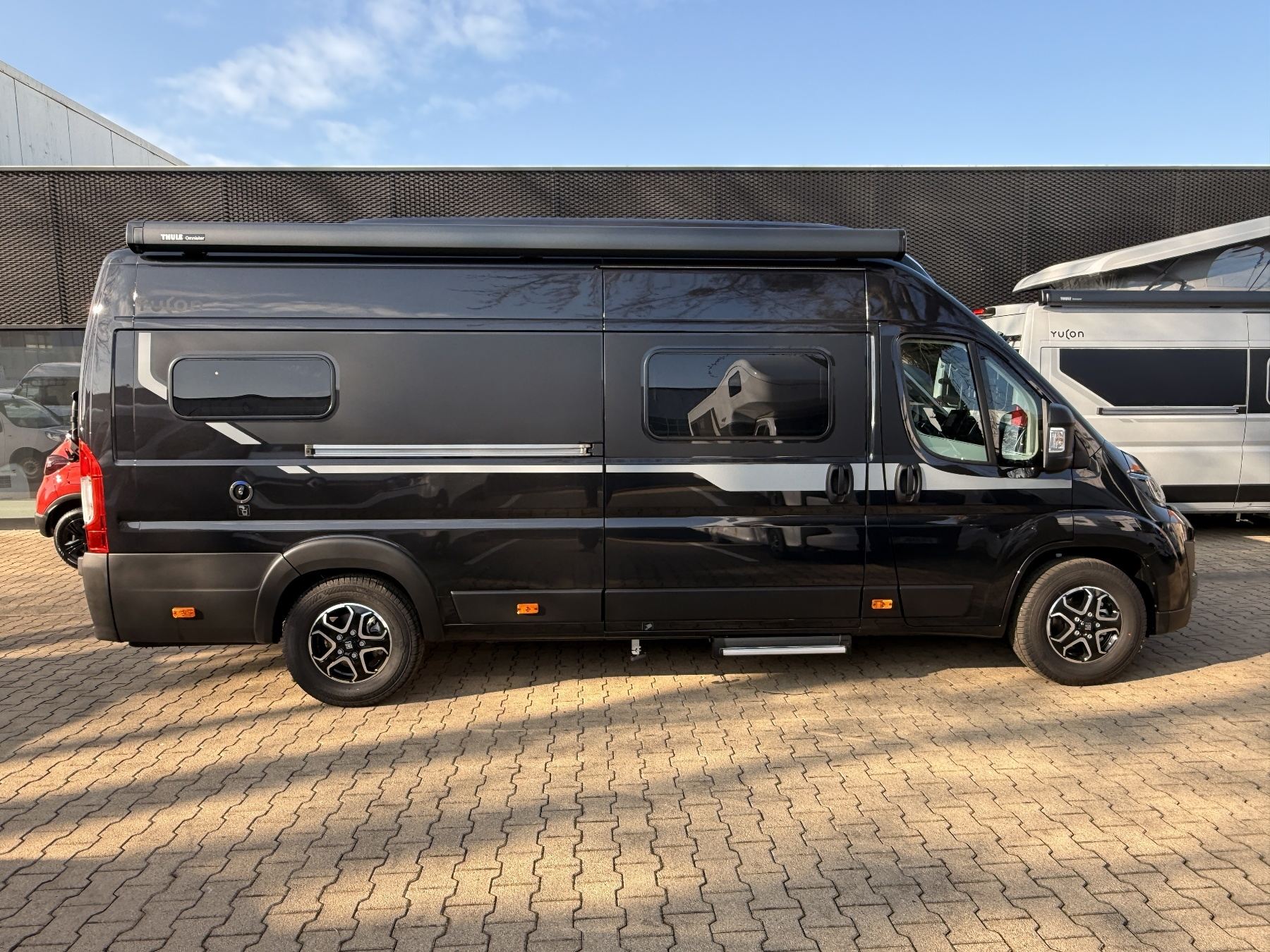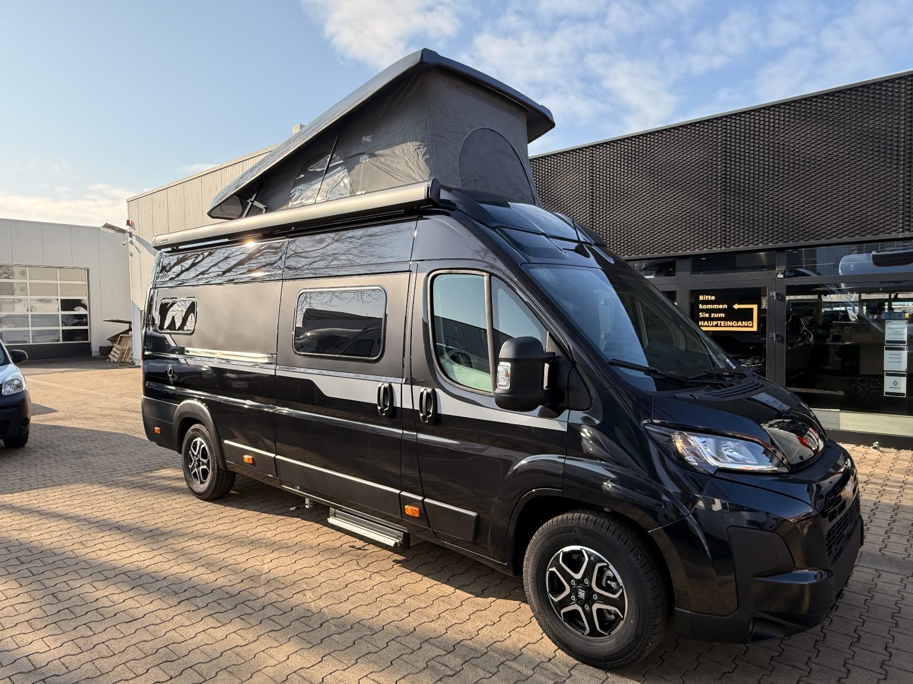 180 PS Diesel mit Automatikgetriebe, 90L Dieseltank, Stoßstangen-Paket, Felgen-Paket, Klimaautomatik, Safety-Paket, LED-Scheinwerfer, Rückfahrkamera, Lackiertes Hubdach, Truma Combi D4, Fahrradträger für zwei Räder, Schlafplatz Sitzgruppe, 10" DAB-Autoradio, 120W Solaranlage