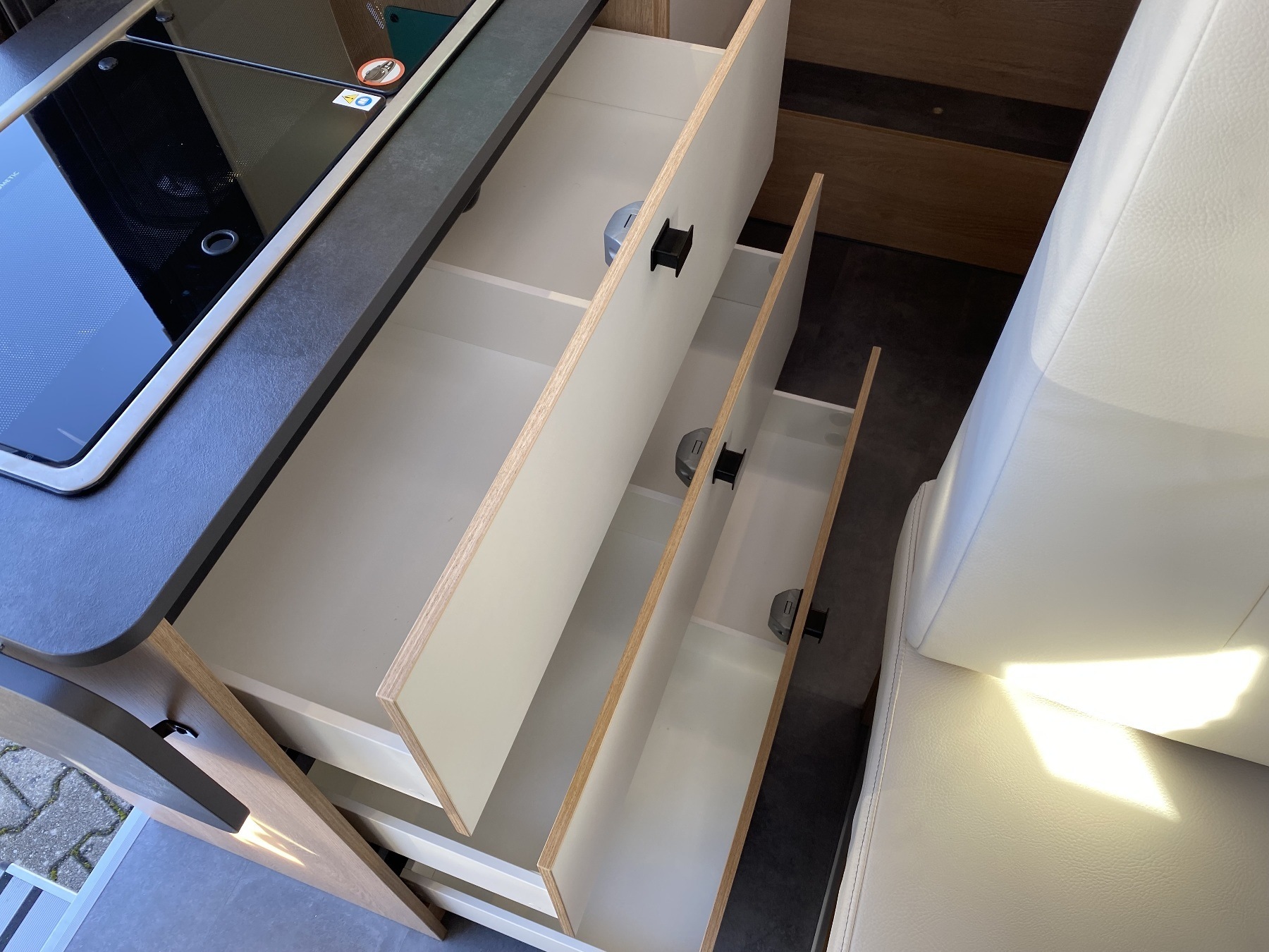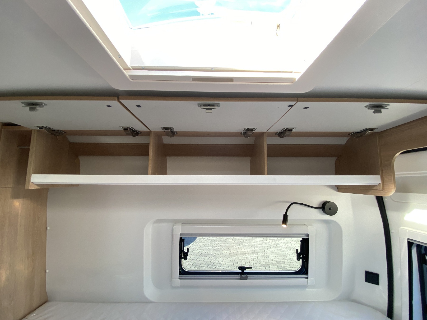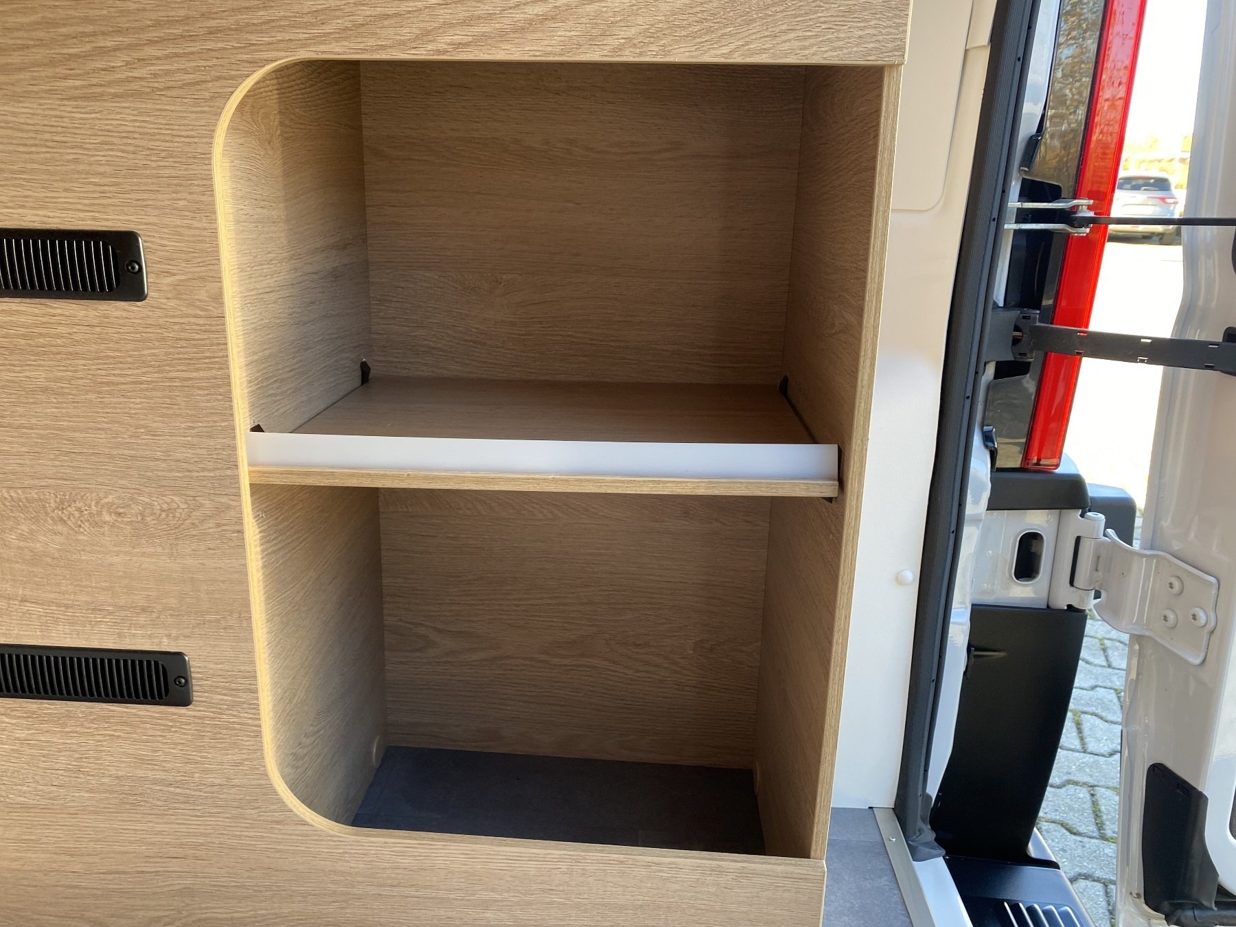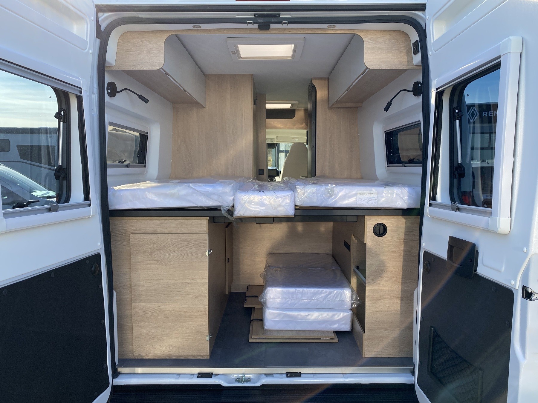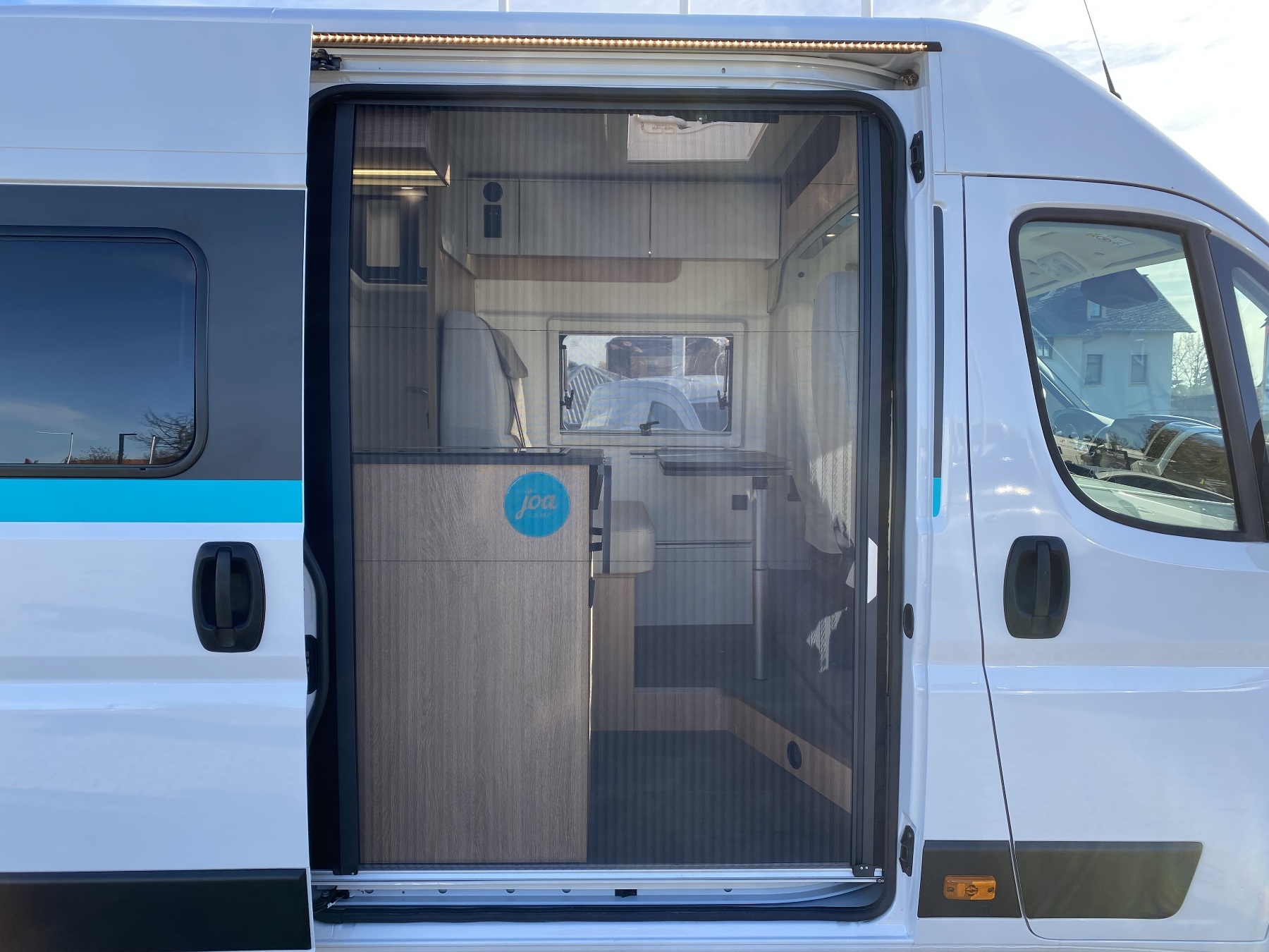 Kunstleder Beige, Alufelgen, Einparkhilfe, Solaranlage 120W, Aufbaubatterie, Rückfahrkamera, Sitzbank Isofifx, Abwassertank isoliert + beheizt, Fenster hinten links und rechts, GPS für Autoradio, Bettenumbau Bereich Sitzgruppe, Crash Sensor, Panorama Schiebedach