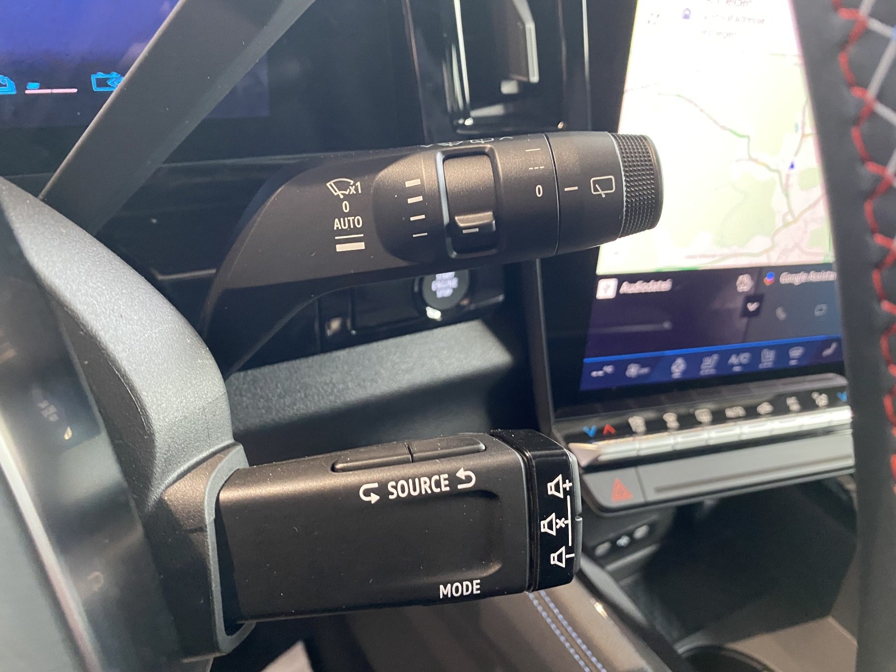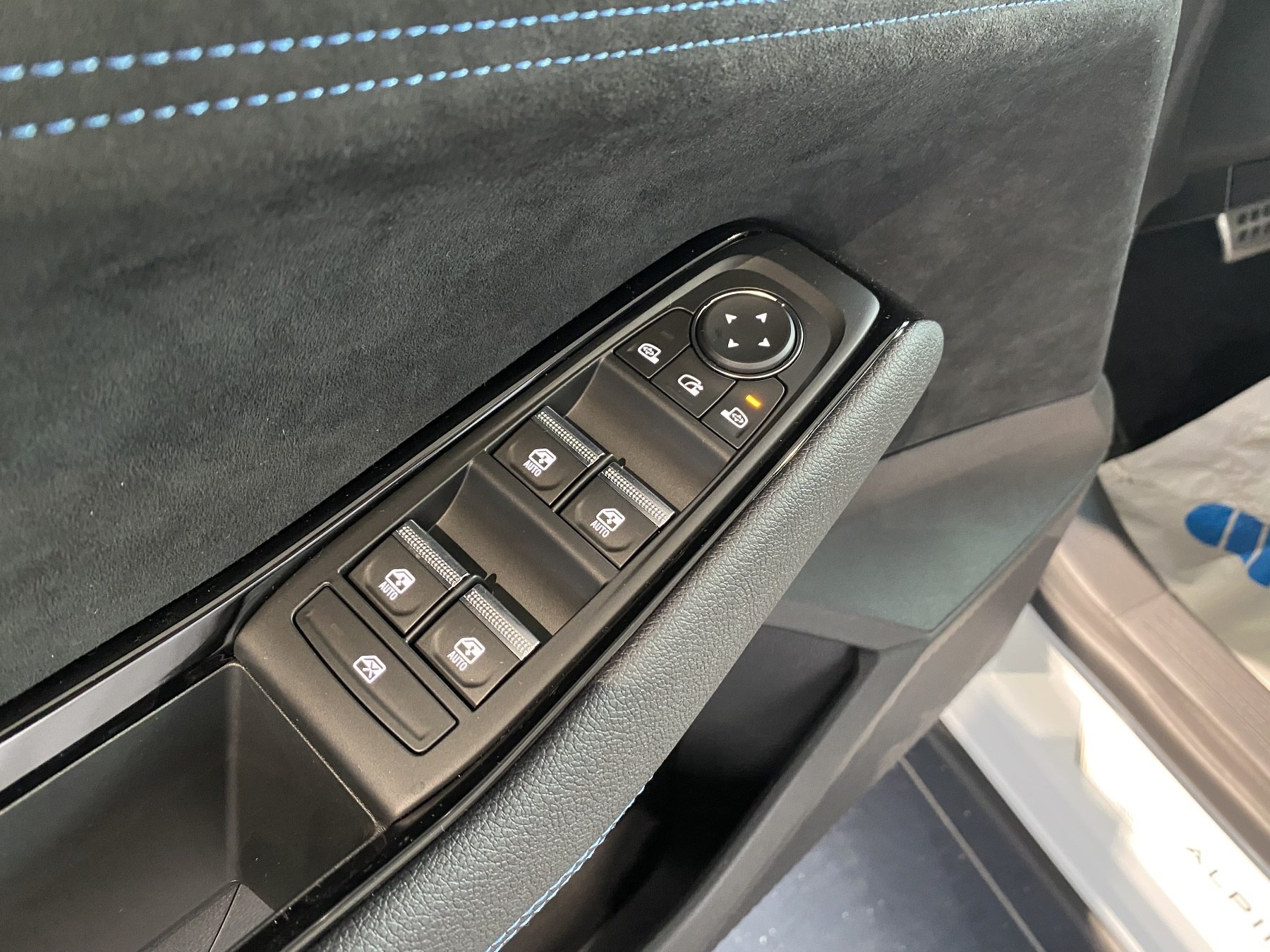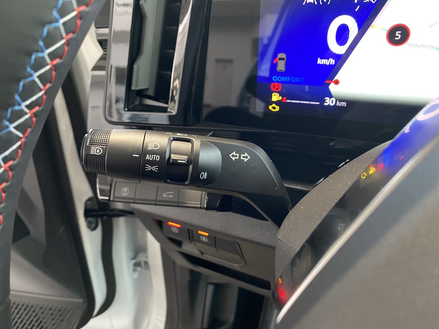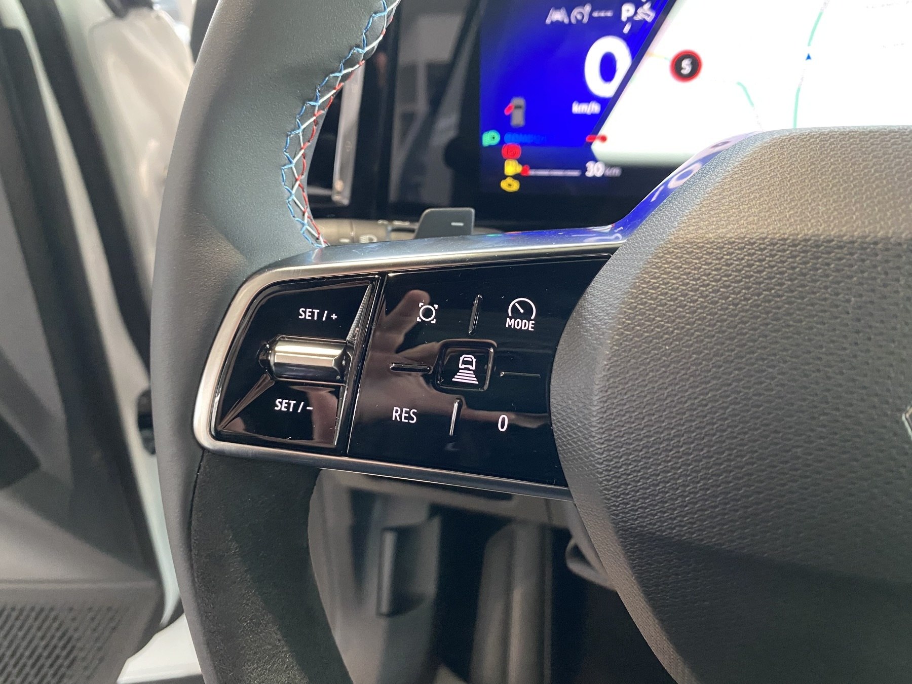 • Lenkrad aus Alcantara/TEP mit Nähten in Blau