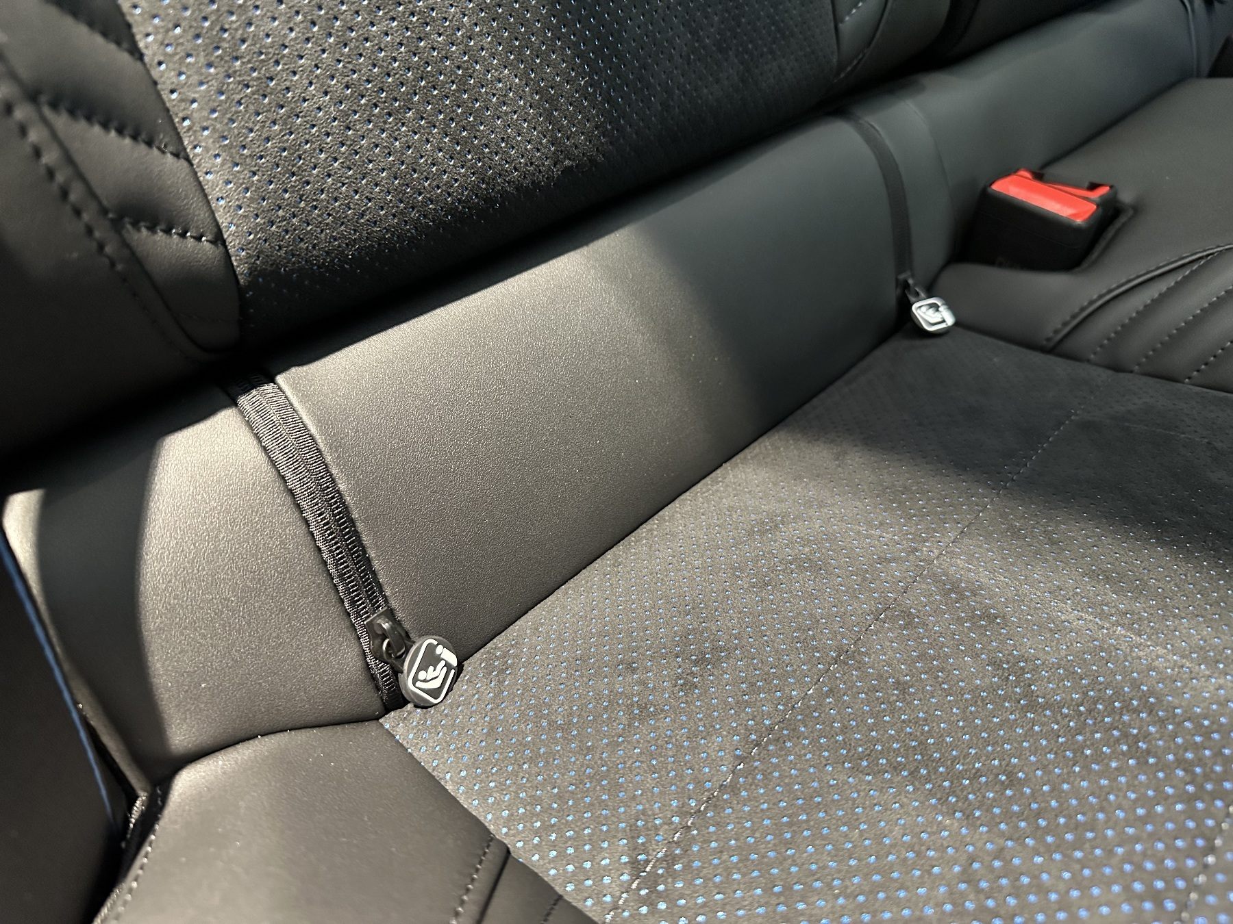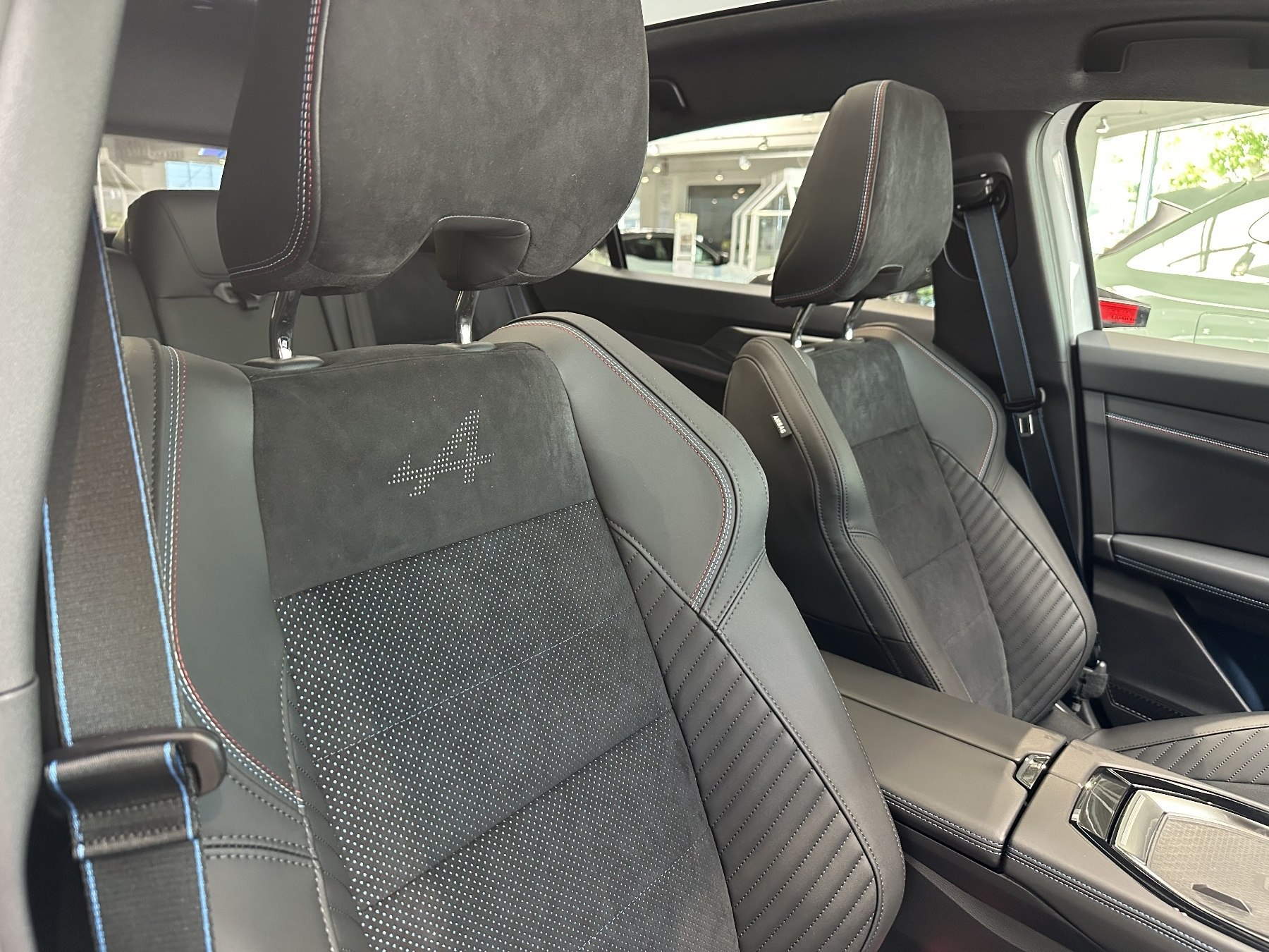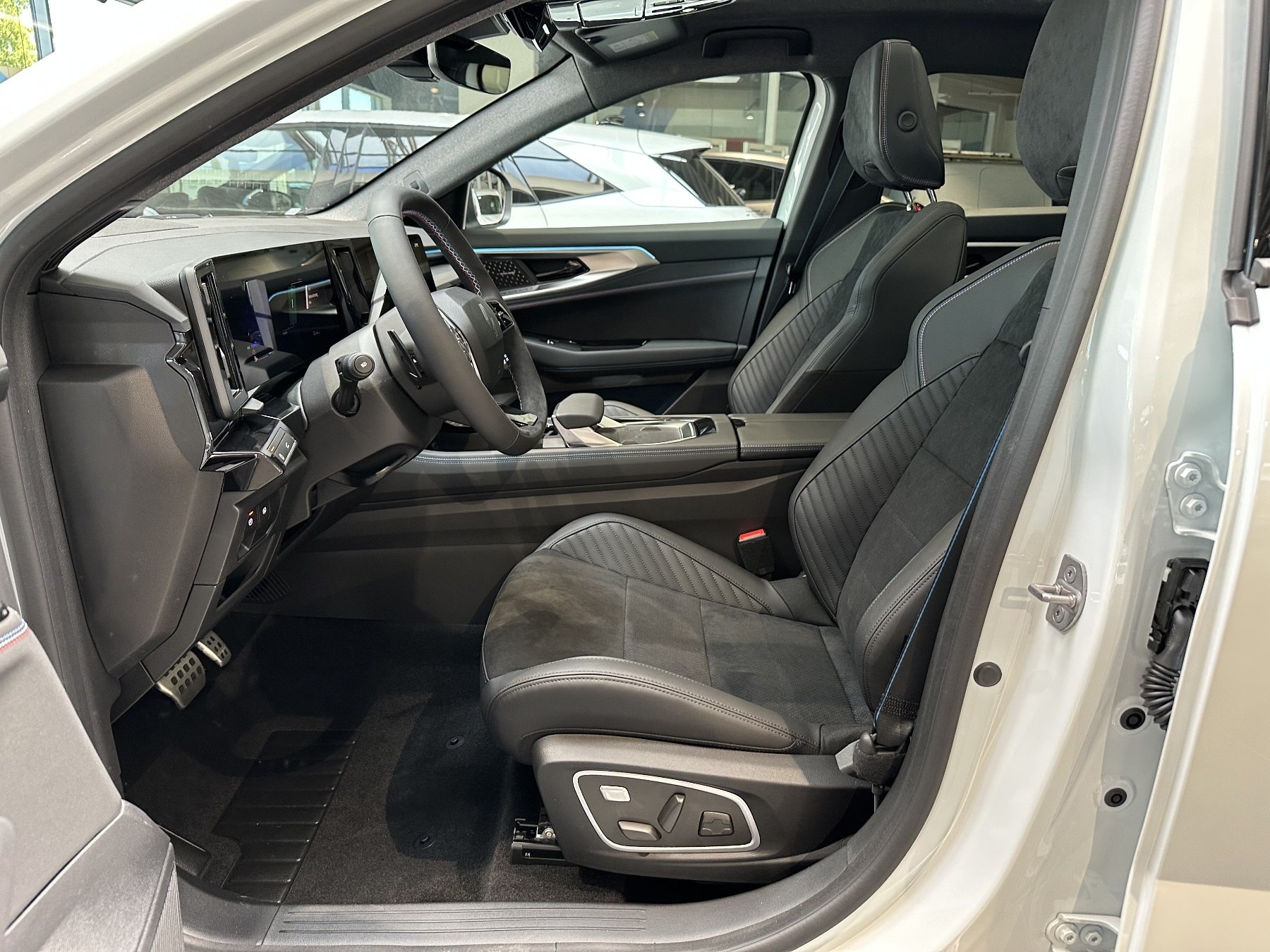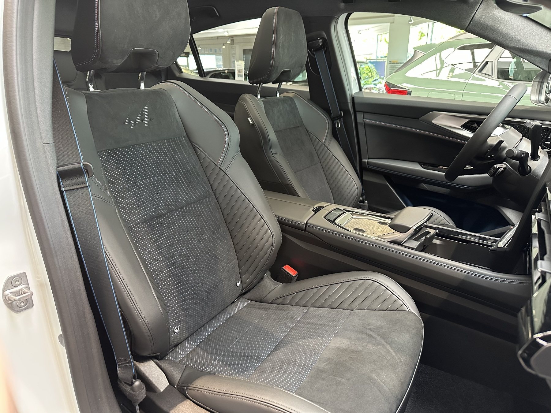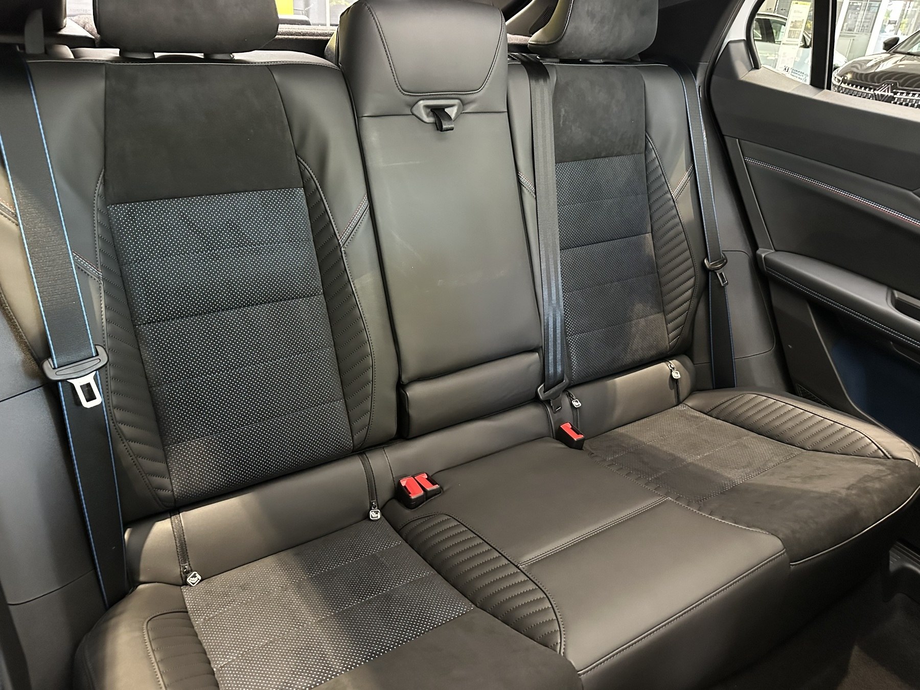• Sportsitze Stoff-Alcantara mit blauem Stofffutter und Nähten