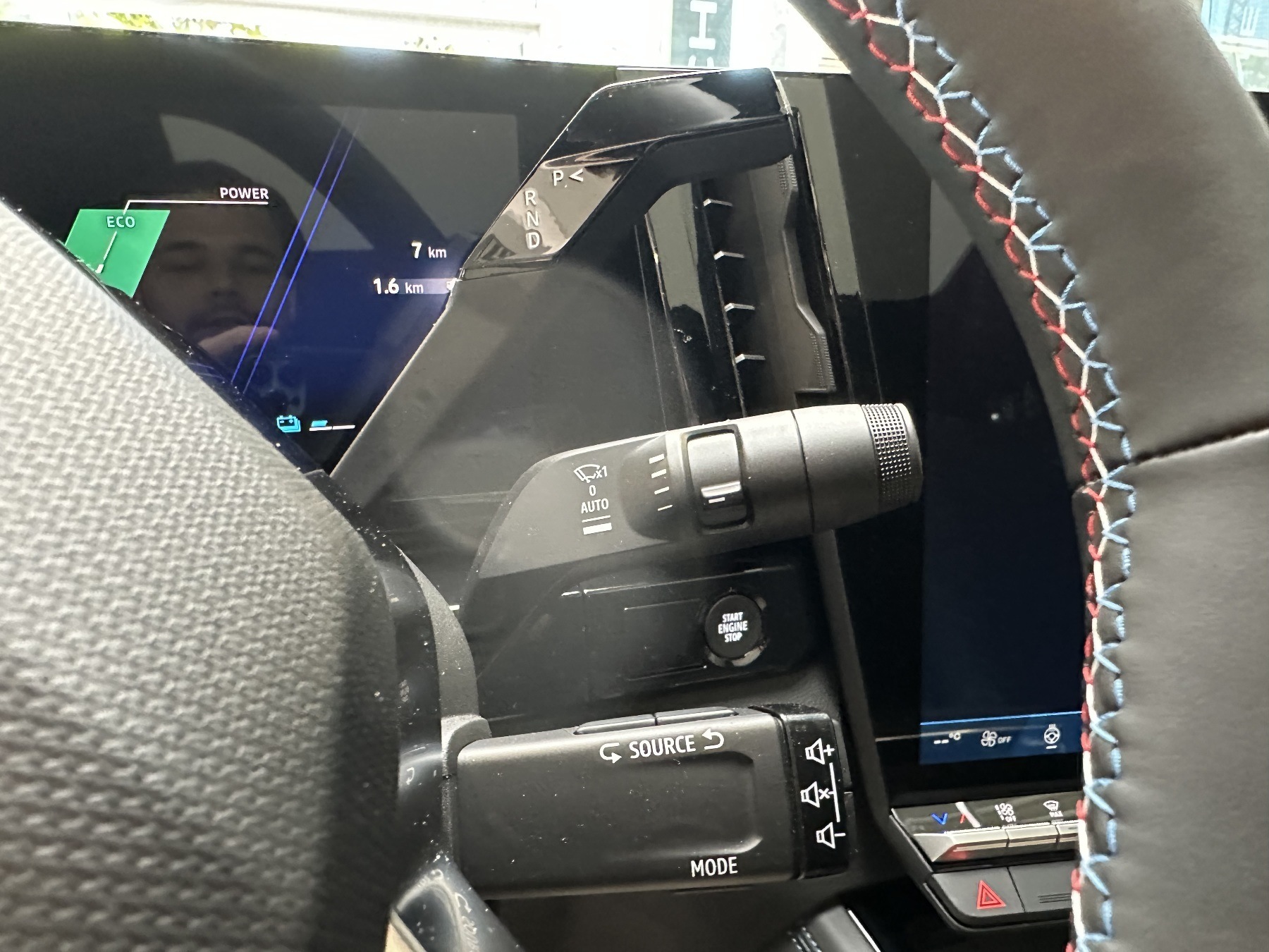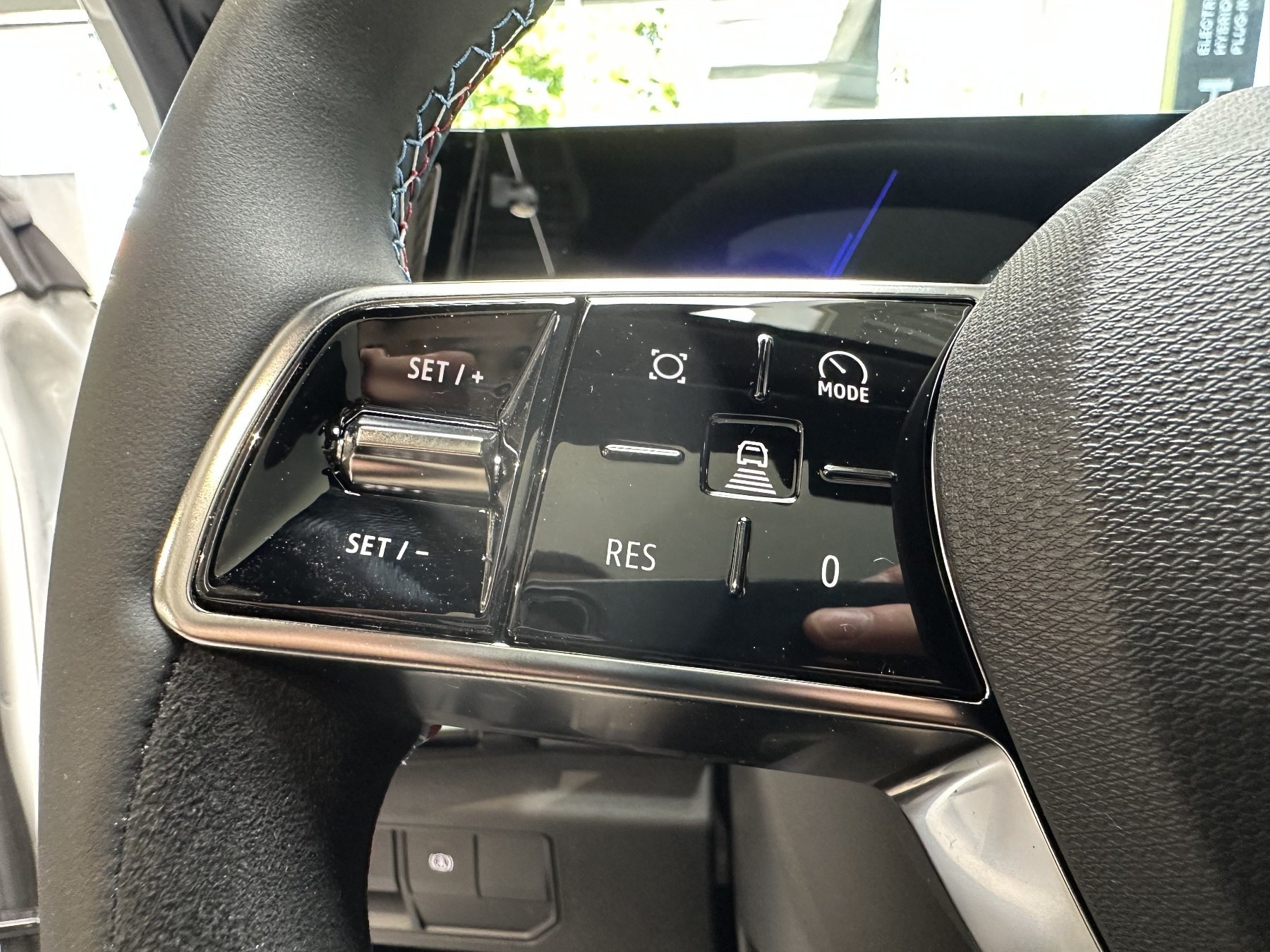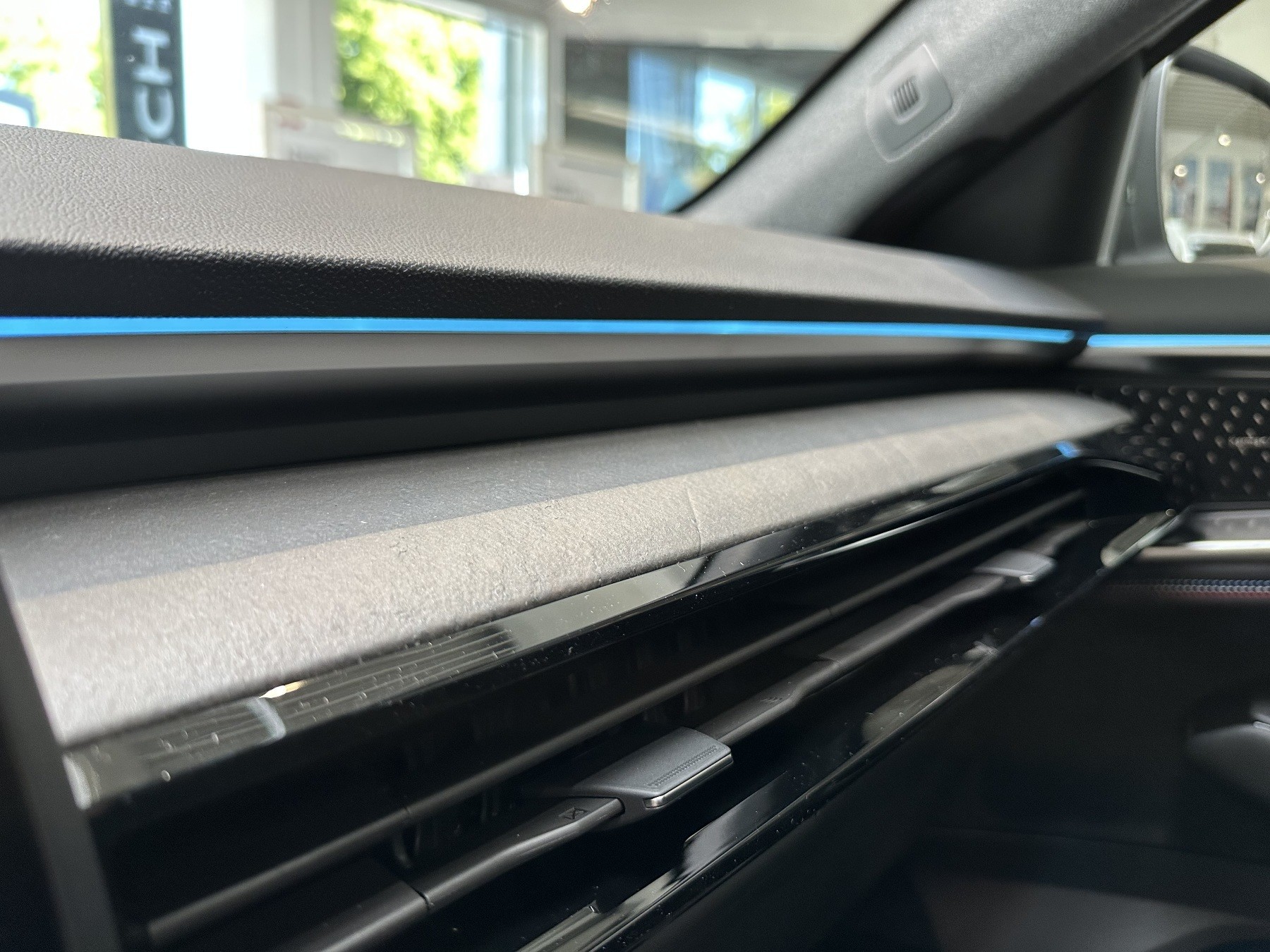 • Lenkrad aus Alcantara/TEP mit Nähten in Blau