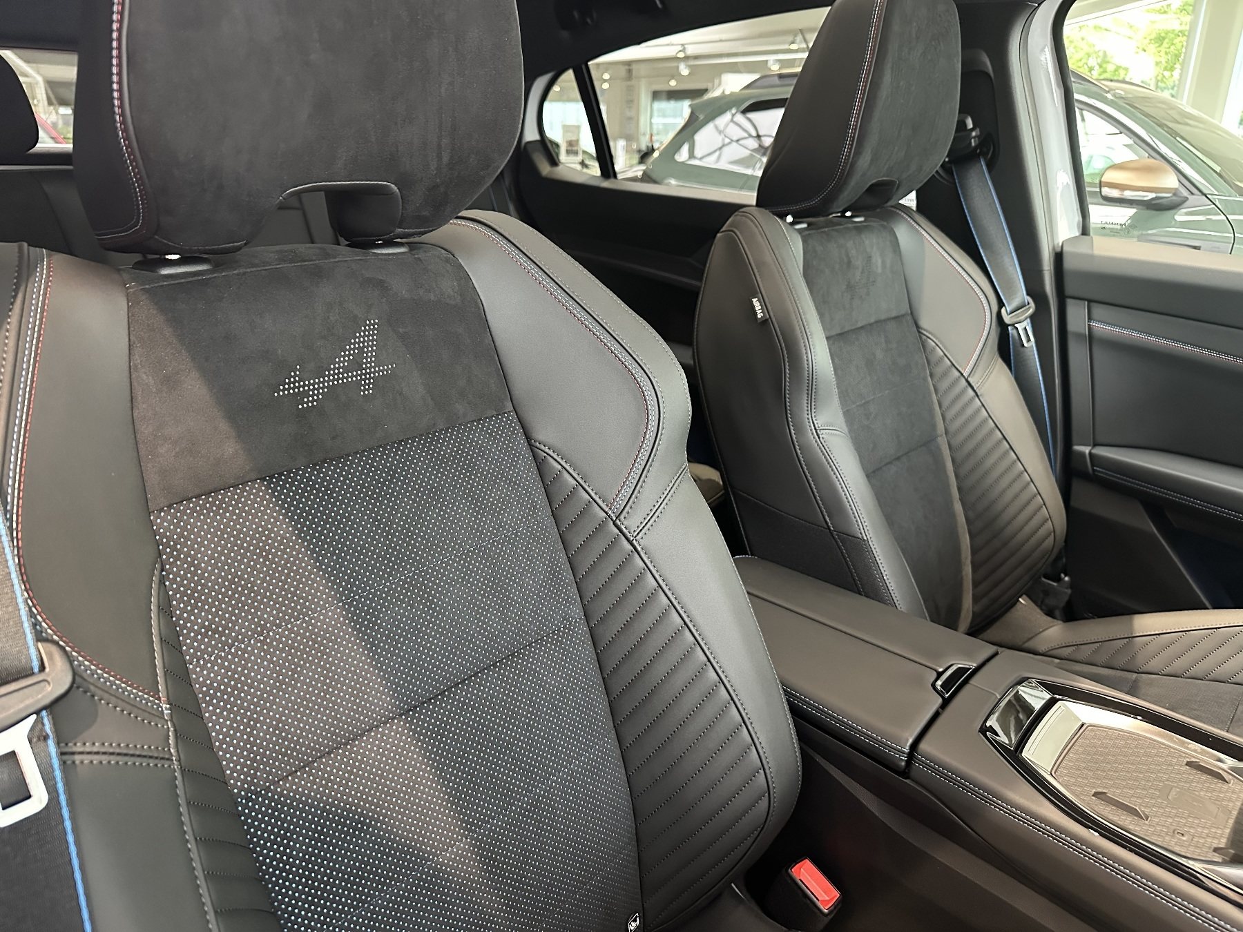 • Sportsitze Stoff-Alcantara mit blauen Nähten