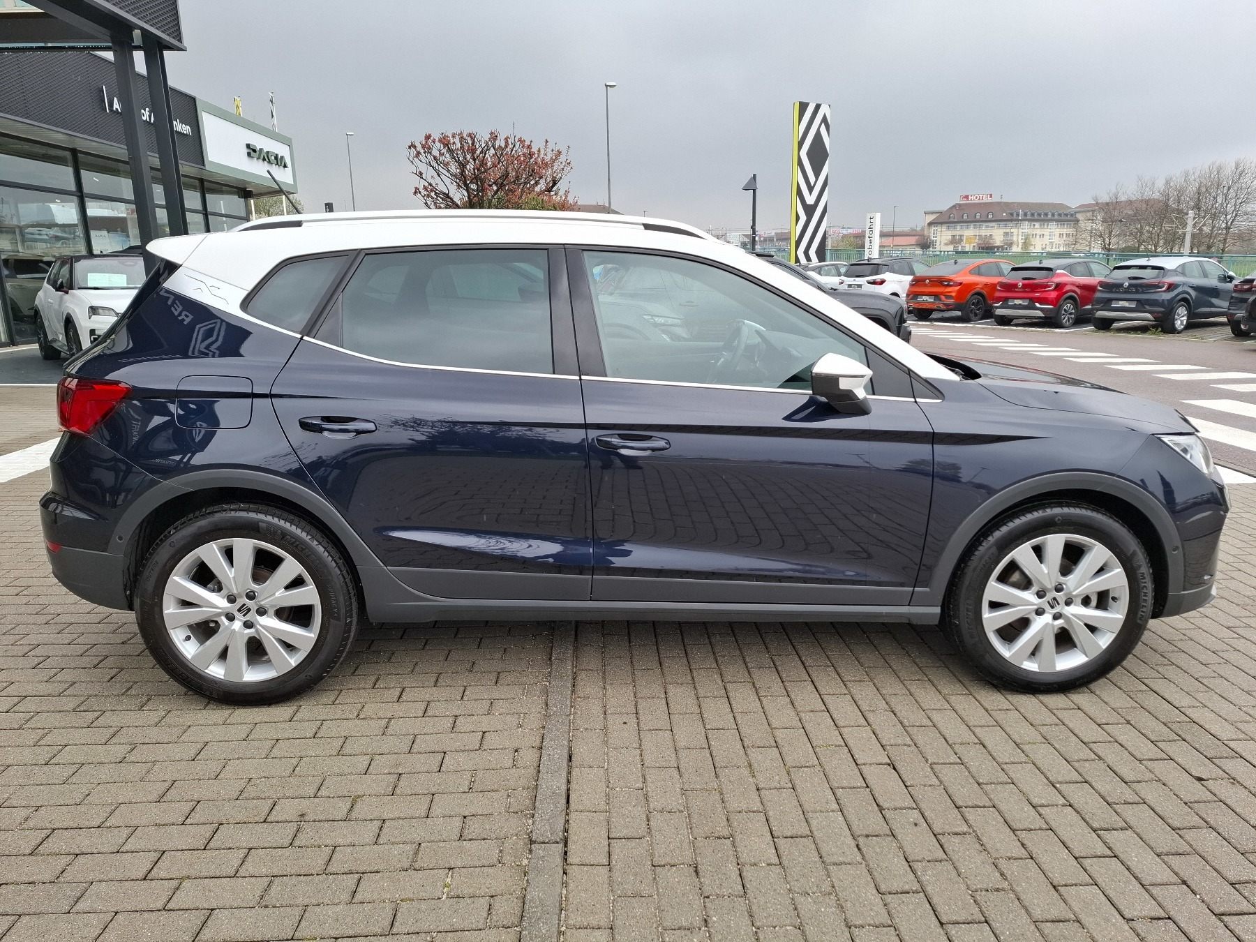- Lackierung: Asphalt Blau Metallic mit Fahrzeugdach in Weiß