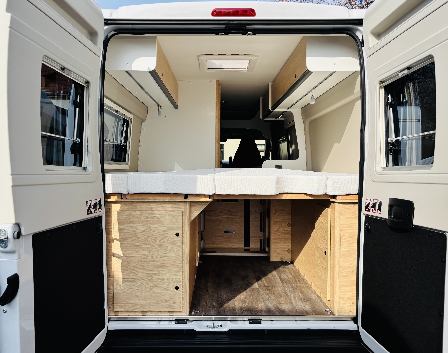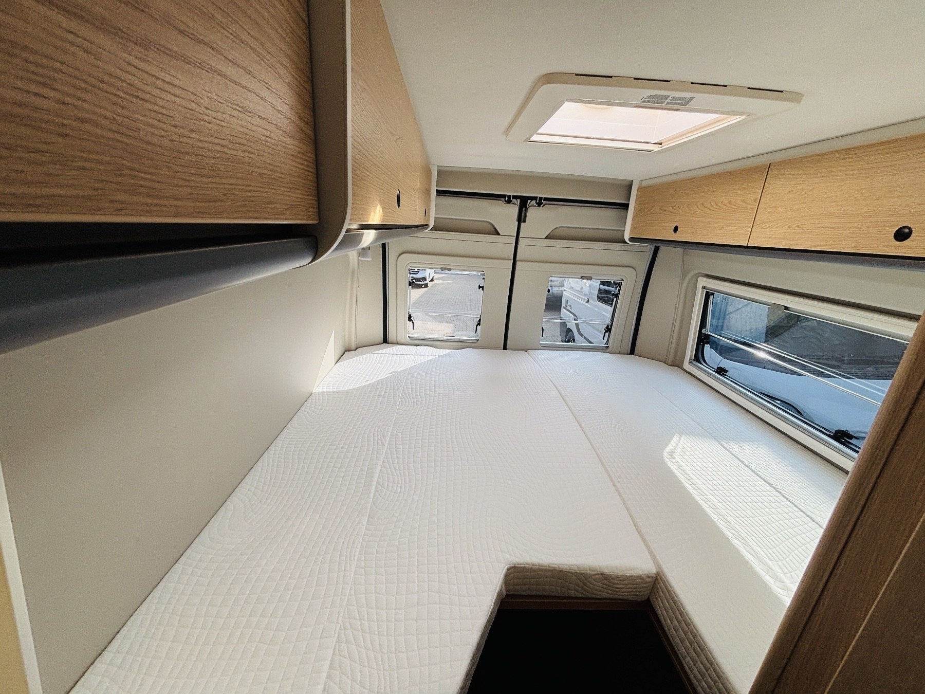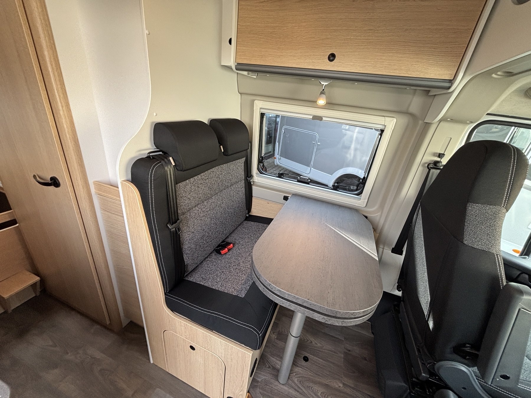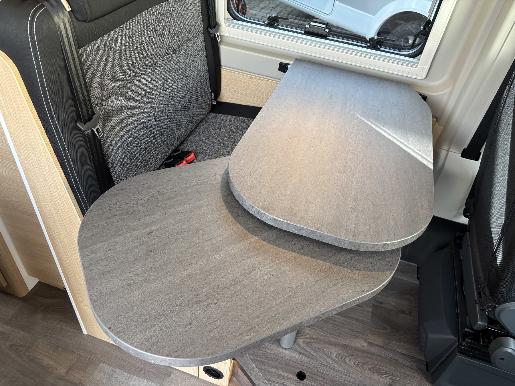 Bettumbau in Sitzgruppe, Tischplattenverlängerung, Kabelvorbereitung Solar & Rückfahrkamera