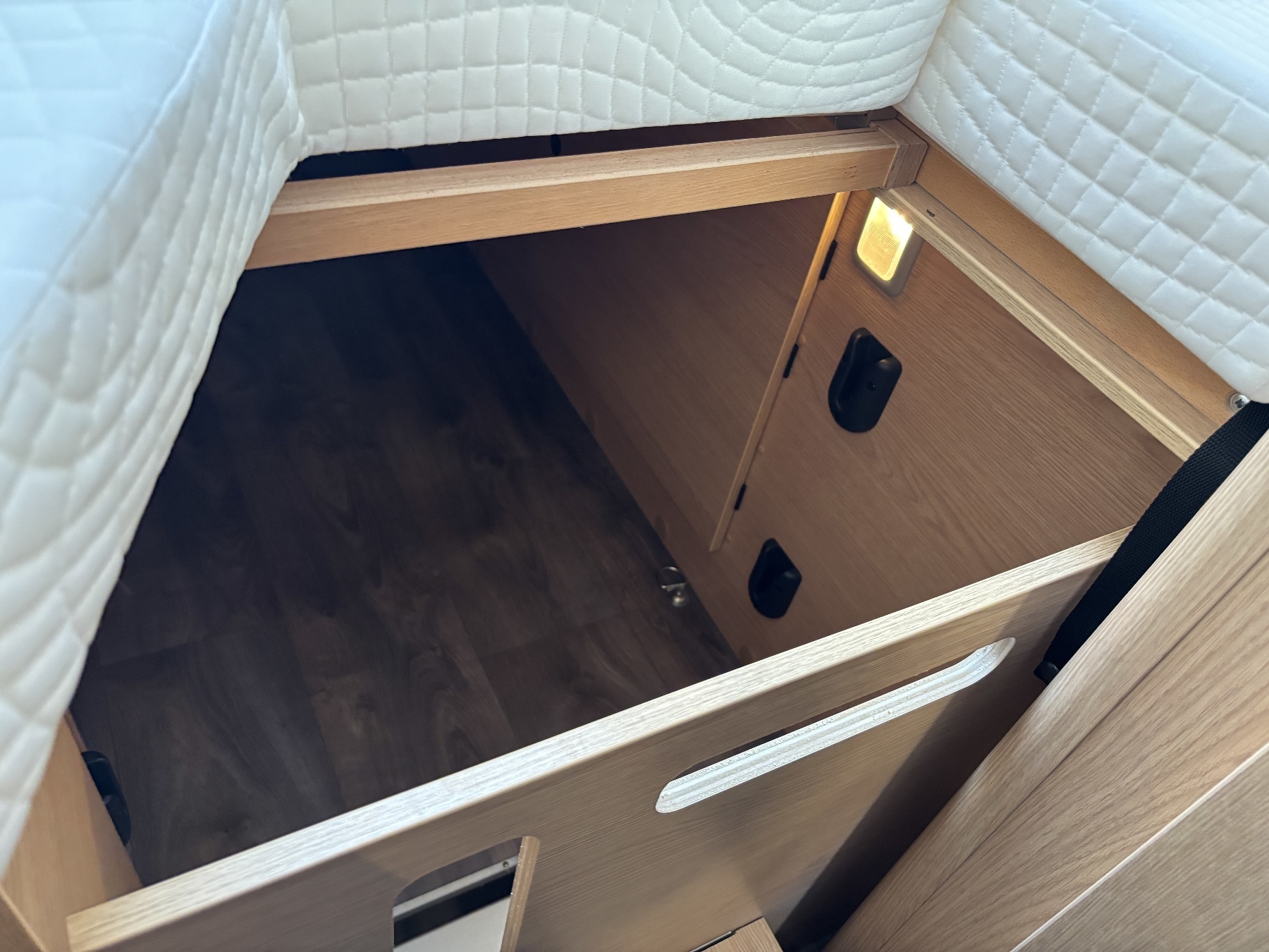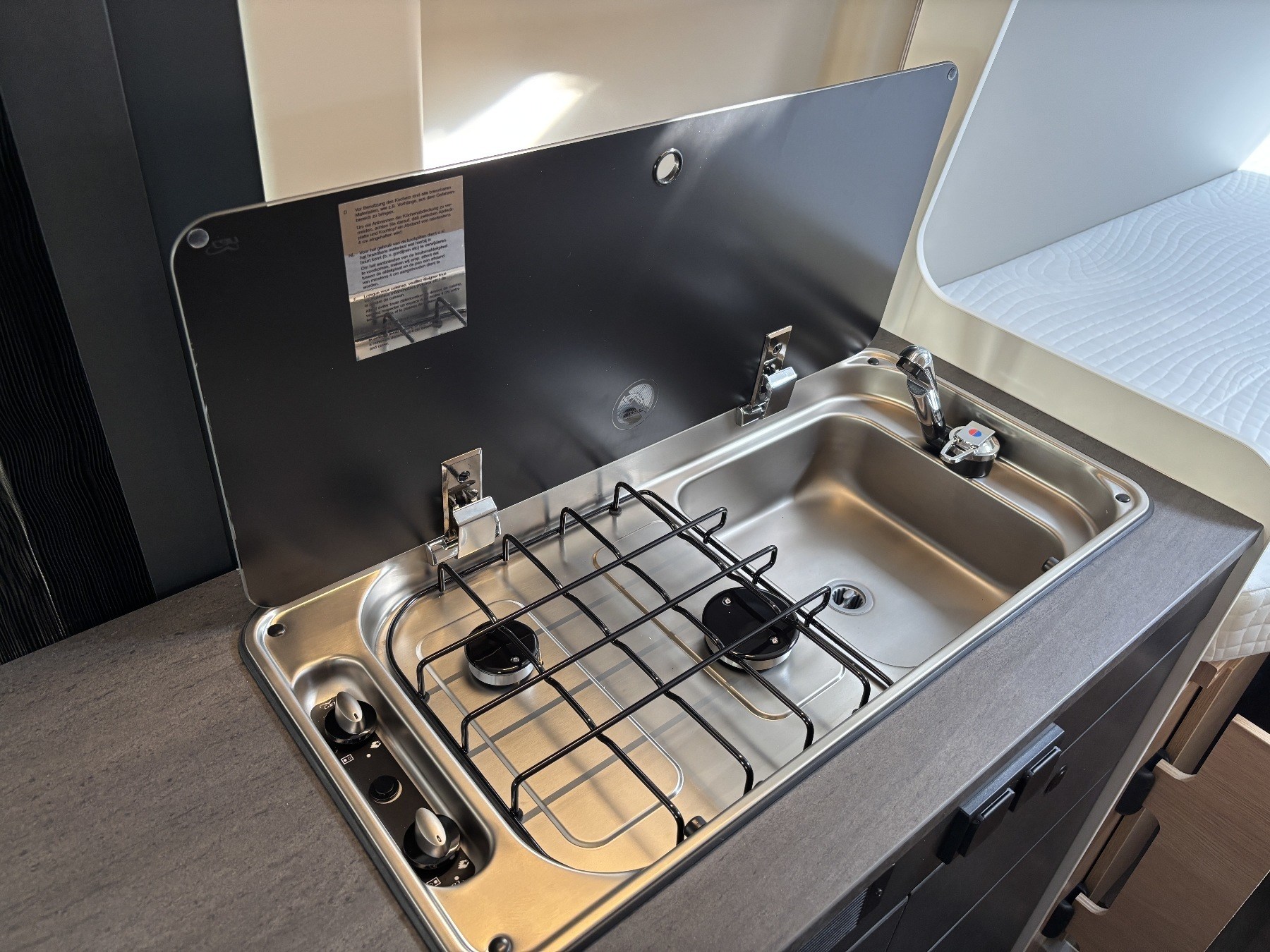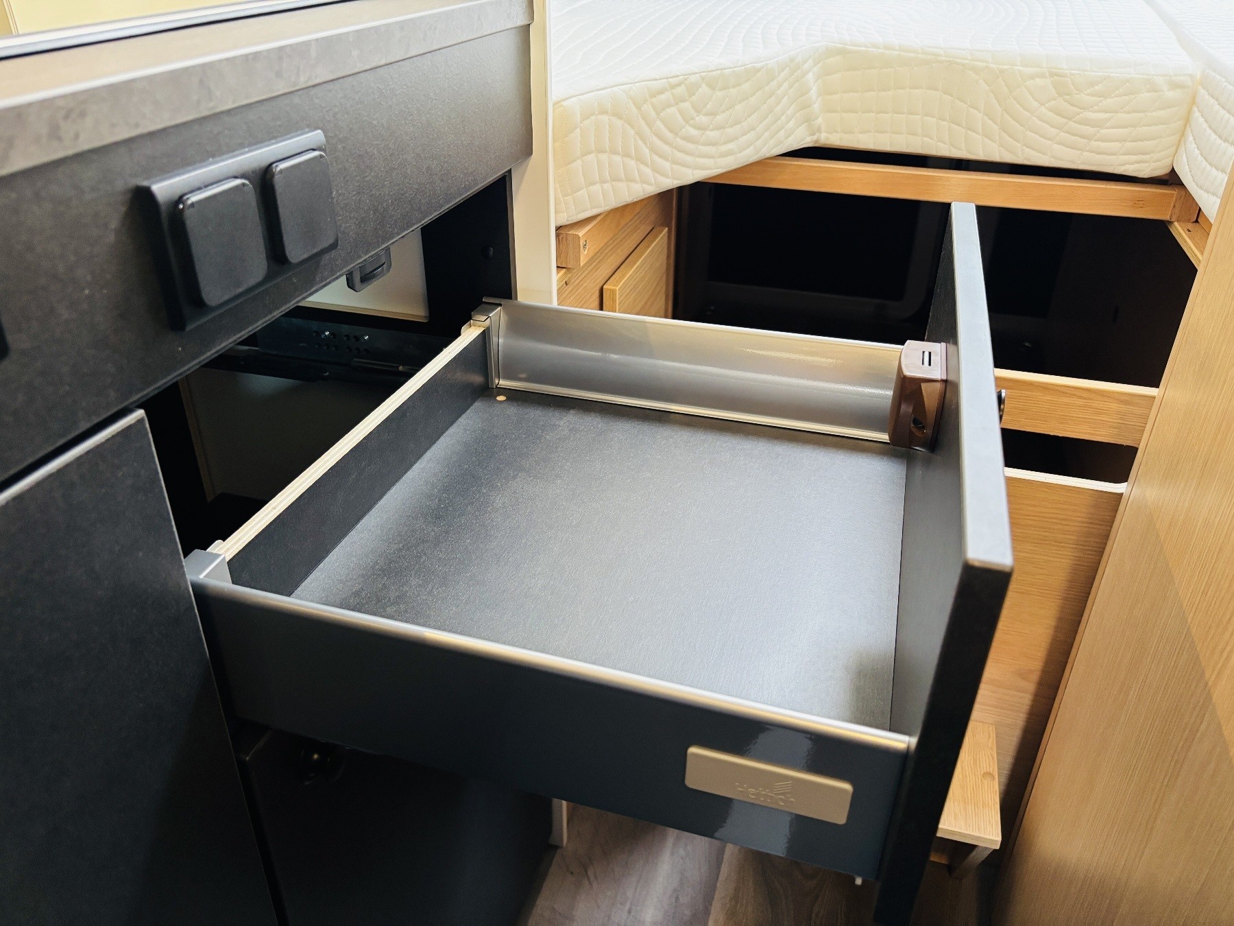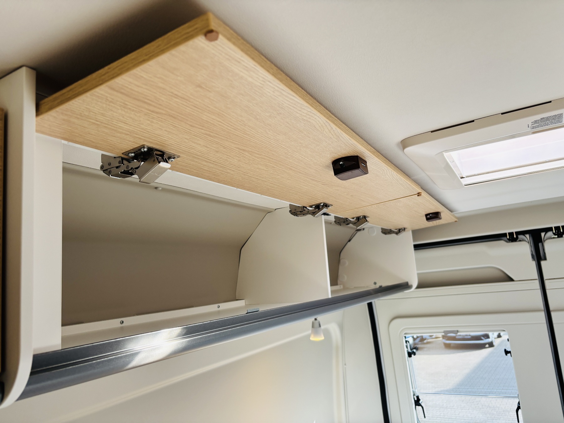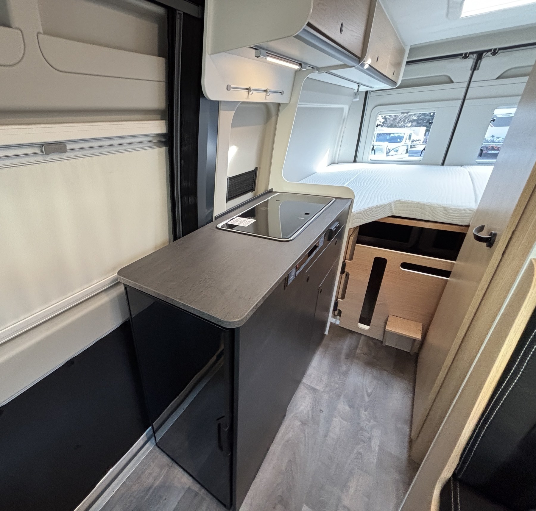 Bettumbau in Sitzgruppe, Tischplattenverlängerung, Kabelvorbereitung Solar & Rückfahrkamera