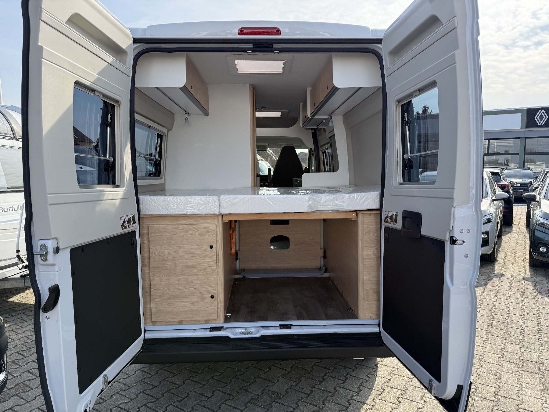 Ausstattung ab Werk u.a. mit:Dieseltank 90L, Kabelvorbereitung für Rückfahrkamera, Paket Alufelgen bestehend aus Lenkrad und Schalthebel in Leder, Luftauslässe mit Applikationen Silber, Alufelgen Bi-Color, Basic Paket bestehend aus Dachhaube Midi-Heki 700x500, Duschausstattung, Kleiderbügel um Dachhaube, elektrische Trittstufe, Fenster im Bad, Tischplattenverlängerung, Multi-Media-System inklsuive Rückfahrkamera.