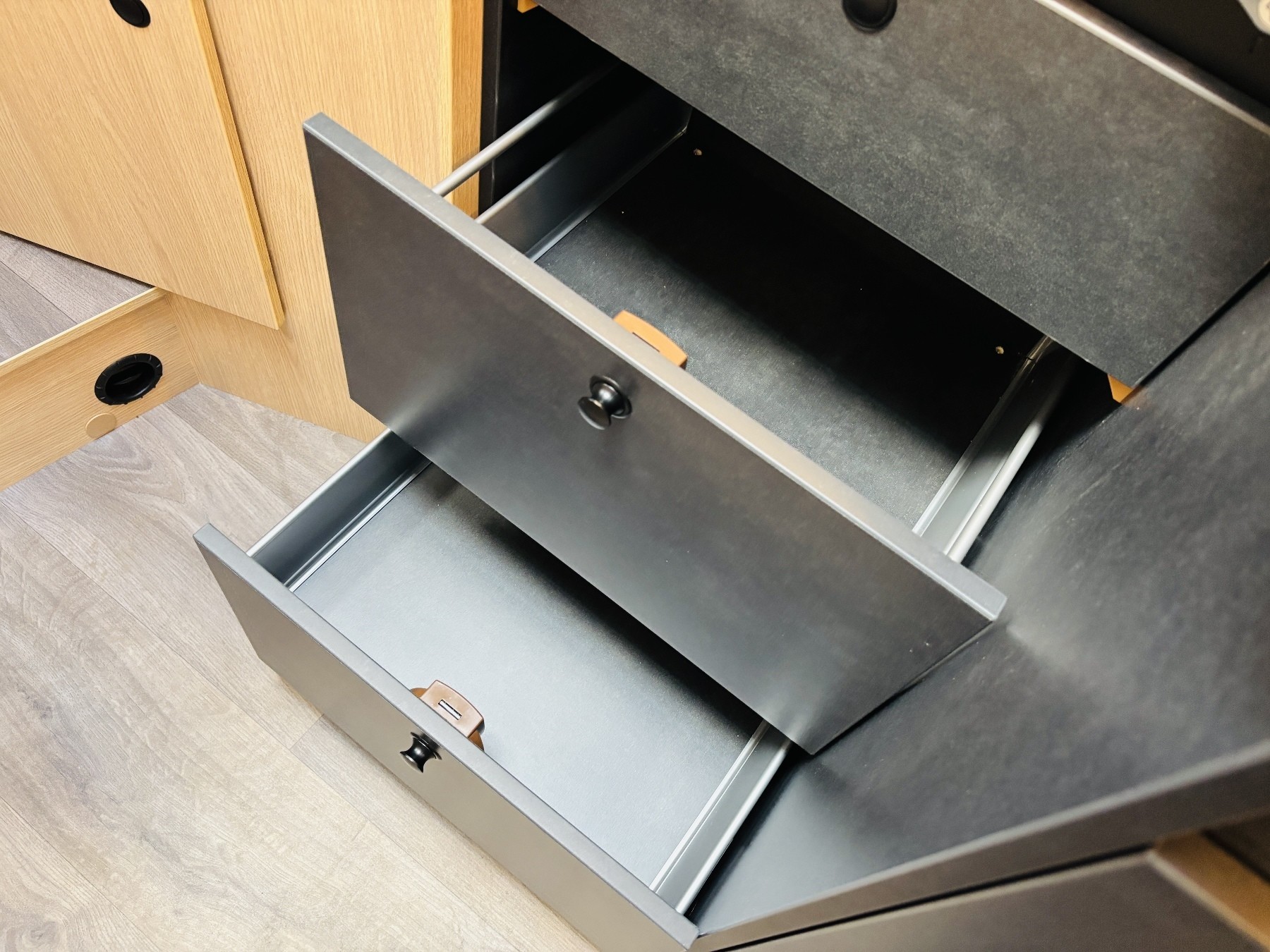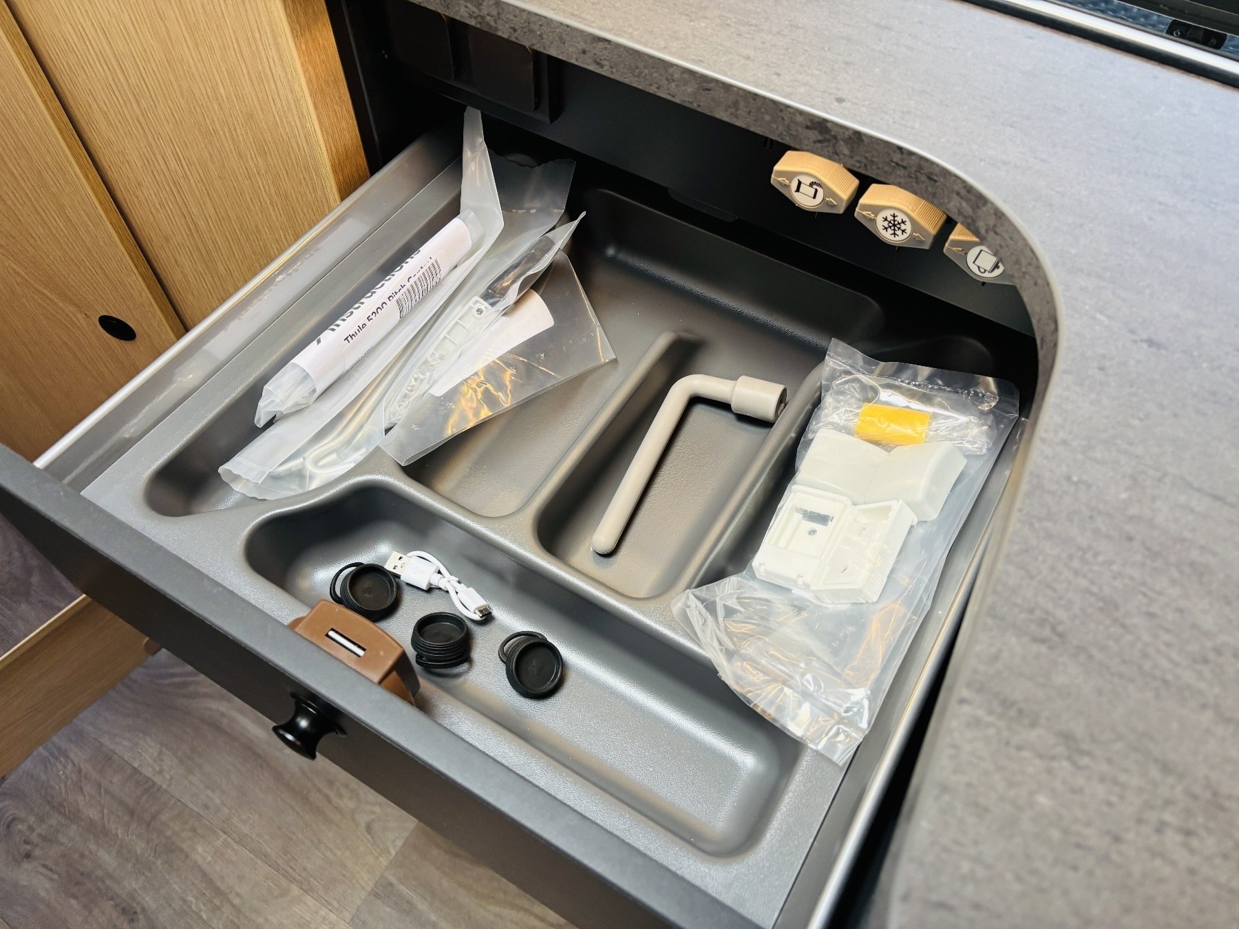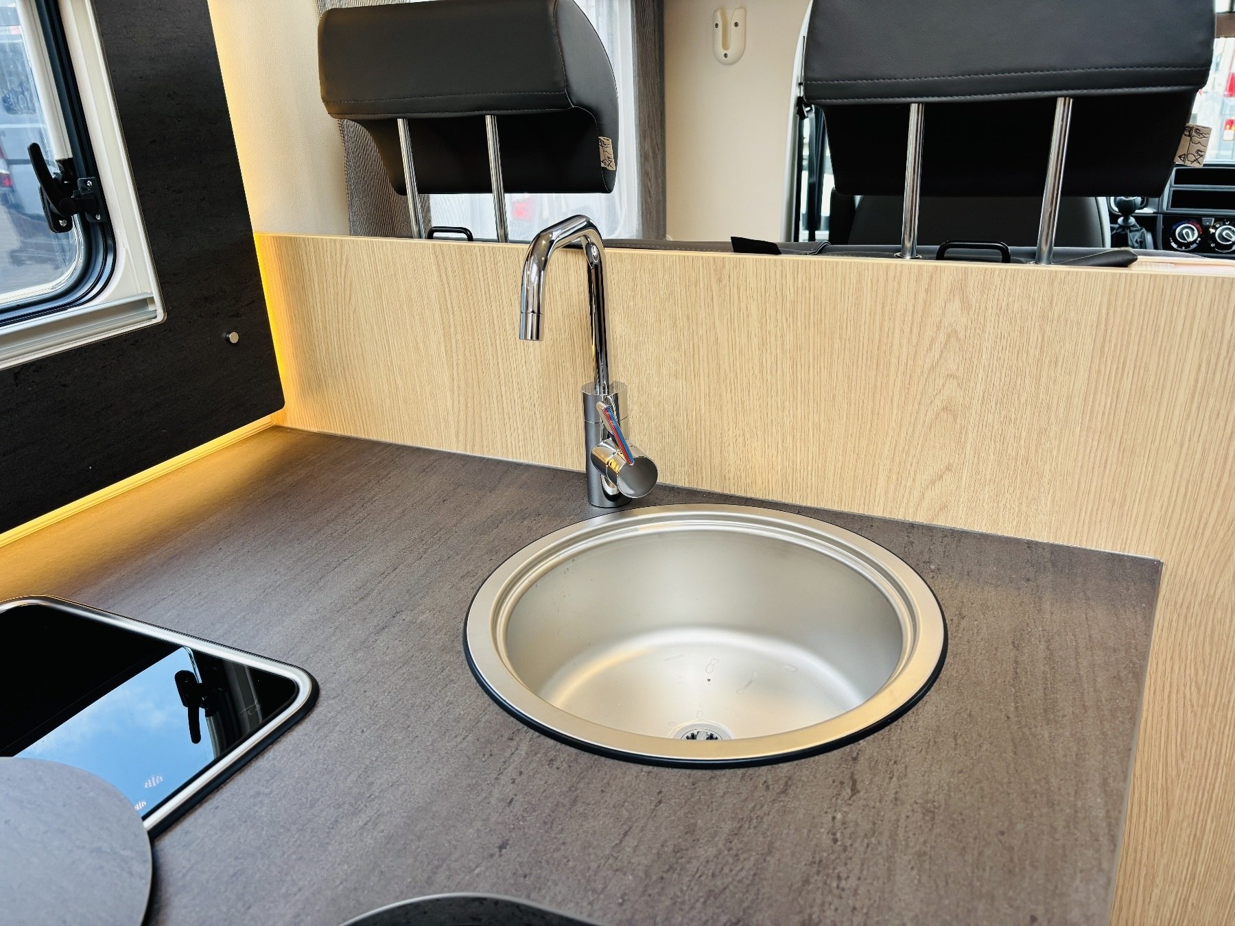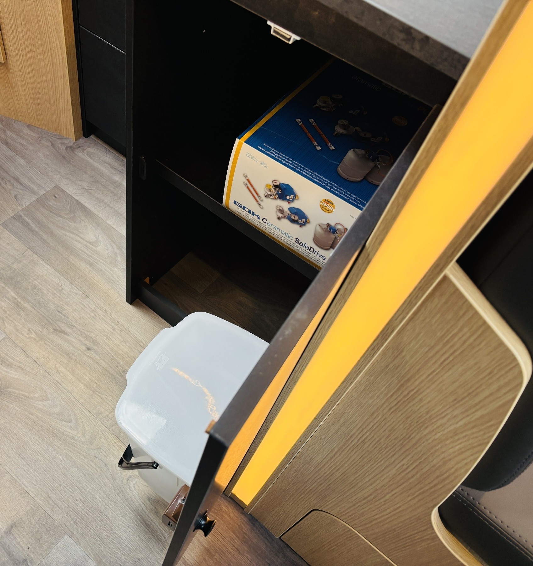 Caramatic SafeDrive Plus (Umschaltanlage+Crashsensor), Hubbett, Holzrost in der Dusche, Faltverdunklung, Kabelvorbereitung für Rückfahrkamera, Kabelvorbereitung Solar, 90l Tank.